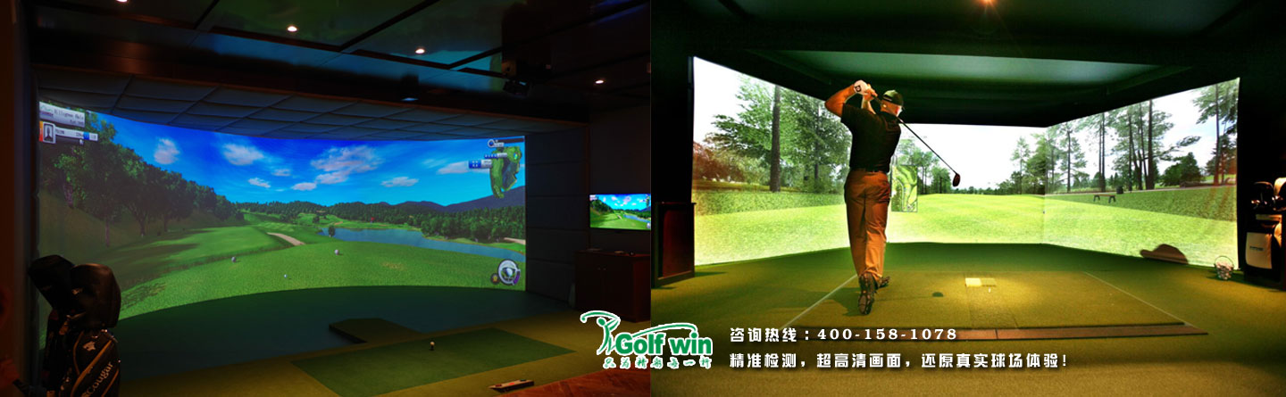 超清環(huán)屏高爾夫模擬器打球視頻3D真實(shí)航拍球場,還原真實(shí)球場,環(huán)屏大畫面帶來打球新震撼。